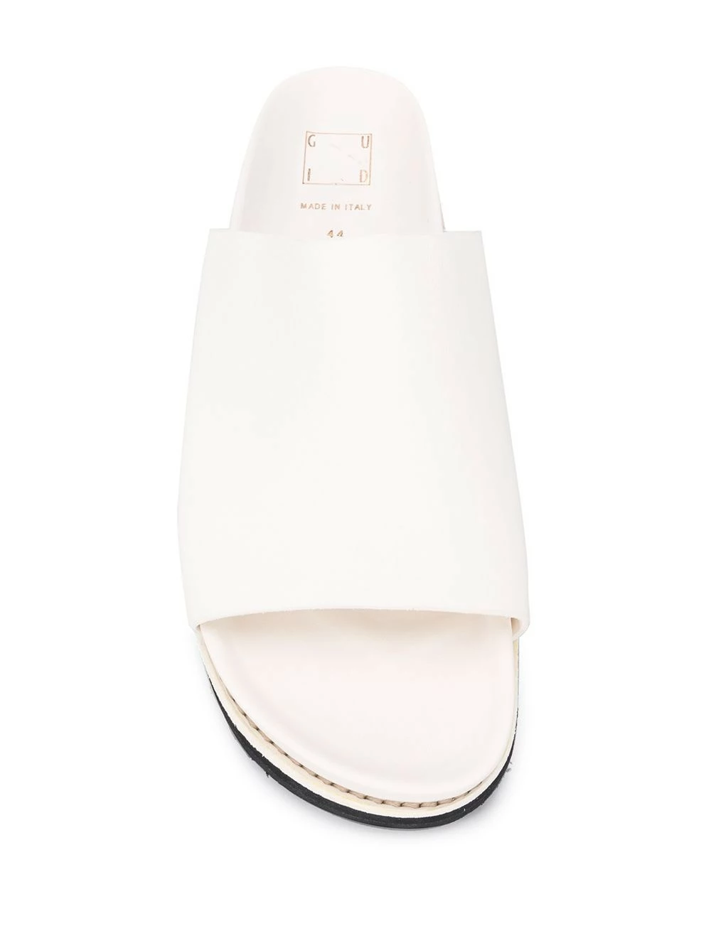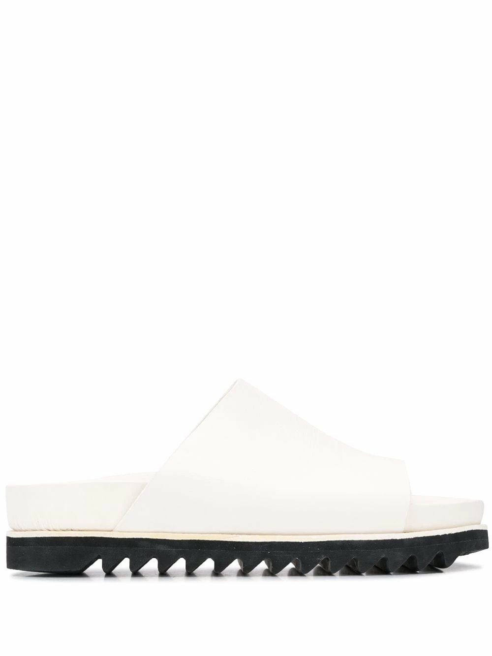 Bout ouvert, semelle intérieure anatomique, semelle intérieure à logo, semelle crantée en caoutchouc. Couleur : blanc. Matière : cuir.
